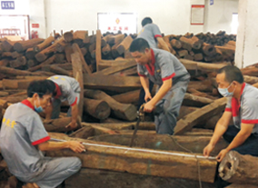 御乾堂紅木在細節上也體現著高水準,僅刮磨這一道工序就有平磨、花磨、拋光等八道工序和十五個作業標準,種種體現出生產管理規范化。